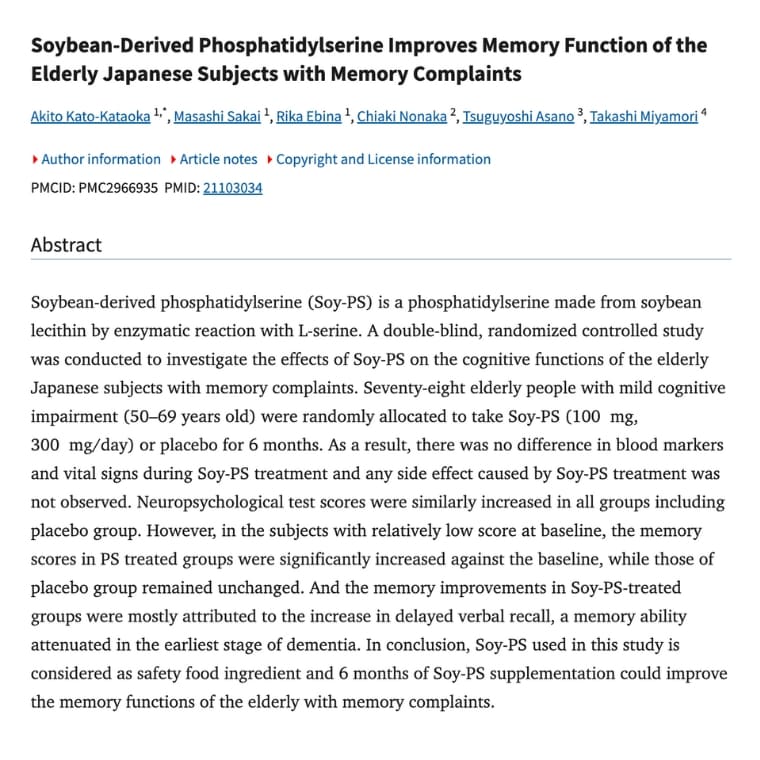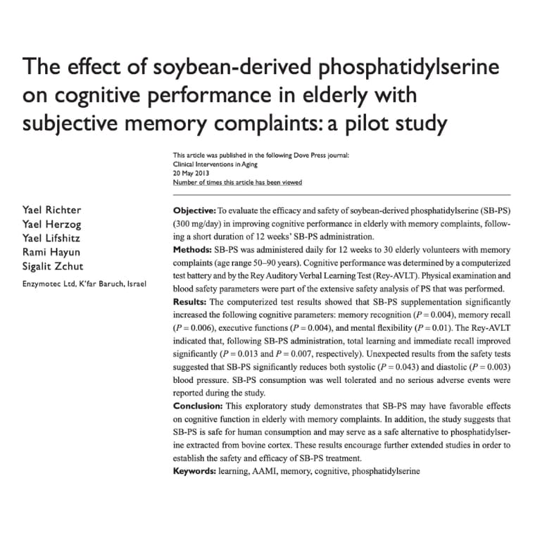 Phosphatidylserine improves reaction time by 24-47 milliseconds in cognitive tests.