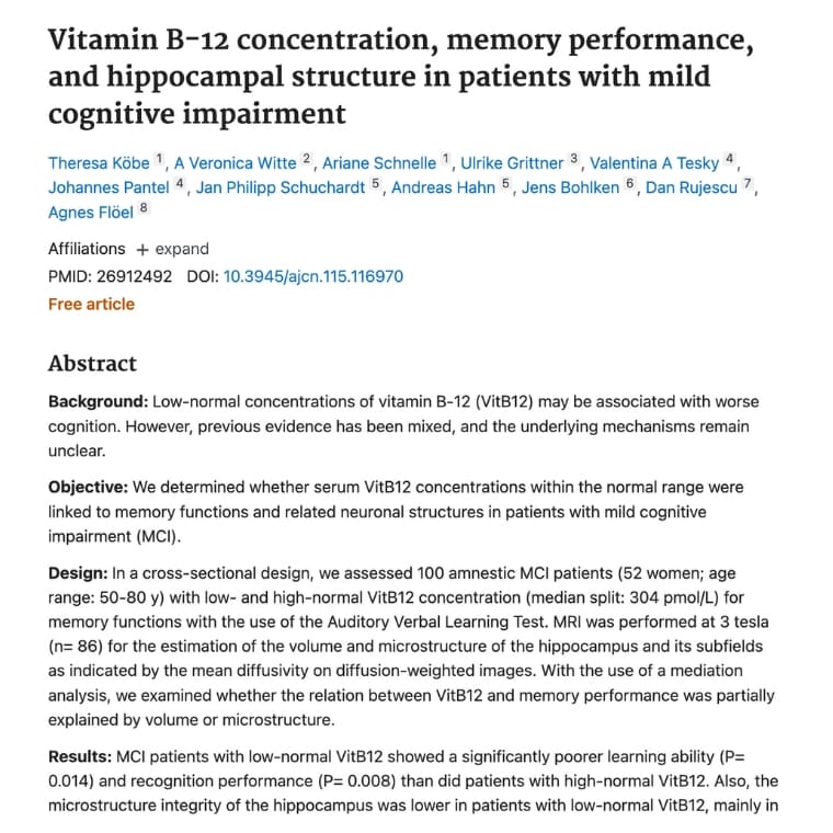 Here's the reality: 20% of adults over 60 and 6% of younger adults are B12 deficient. Even marginal depletion kills cognitive performance.